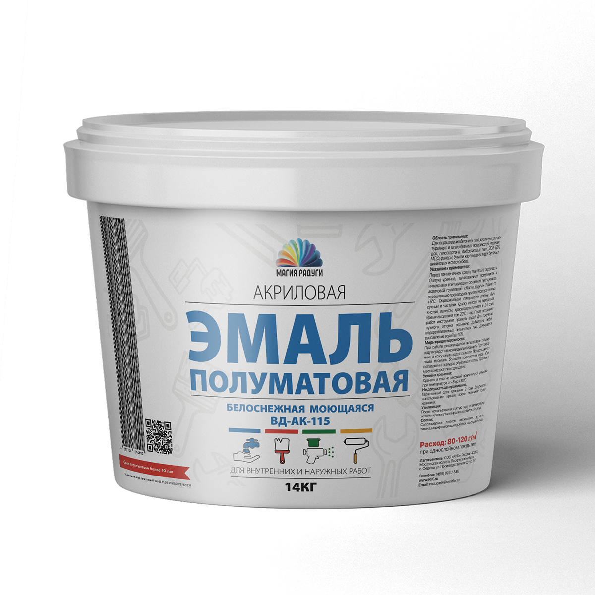 Эмаль акриловая Магия Радуги ВД-АК-115, полуматовая, 14 кг, белоснежная