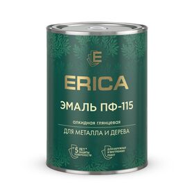 Эмаль ПФ-115 для металла и дерева Erica, алкидная, глянцевая, 0,8 кг, RAL 7035, светло-серая
