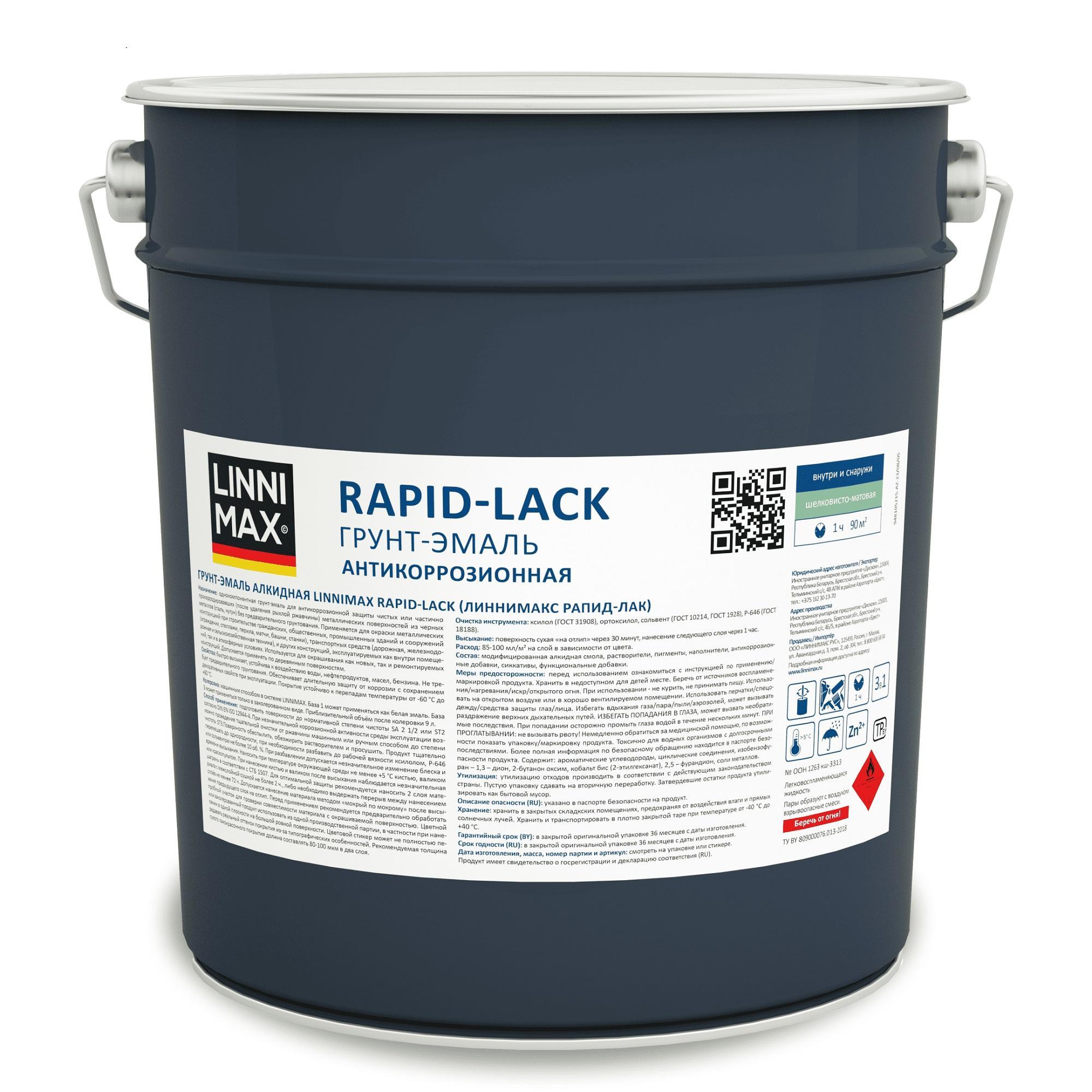 Грунт-эмаль антикоррозионная Linnimax Rapid-Lack, 9 л, RAL 9005, черный