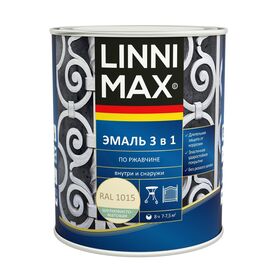 Грунт-эмаль по ржавчине Linnimax 3 в 1, 0,75 л, RAL 1015, слоновая кость