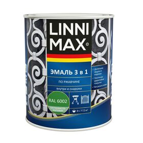 Грунт-эмаль по ржавчине Linnimax 3 в 1, 0,75 л, RAL 6002, зеленая