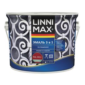 Грунт-эмаль по ржавчине Linnimax 3 в 1, 2,5 л, RAL 3011, красная