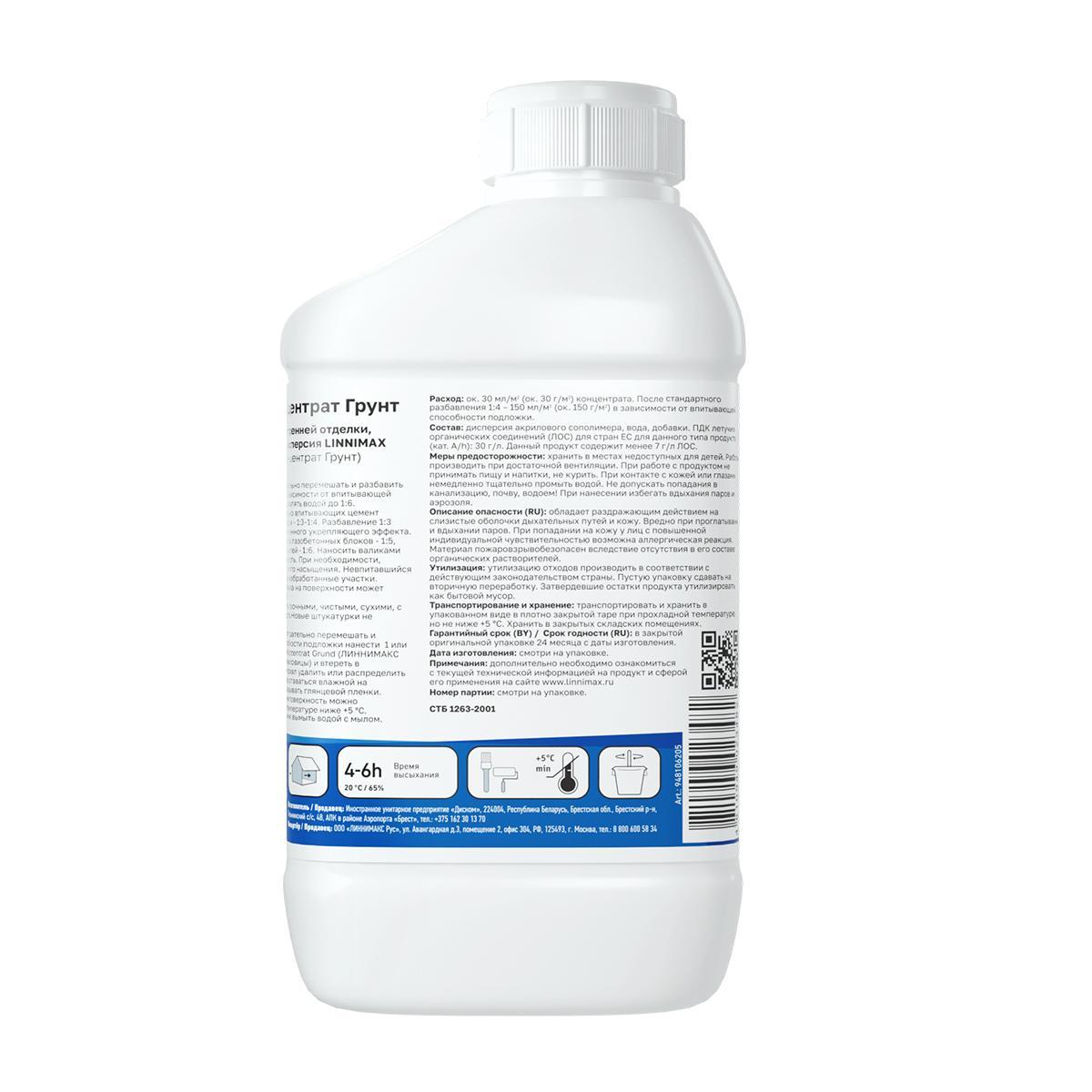 Грунтовка глубокого проникновения концентрат 1:4 Linnimax Konzentrat Grund, 0,9 л