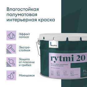 Краска интерьерная влагостойкая Talatu Rytmi 20, полуматовая, база А, белая, 9 л