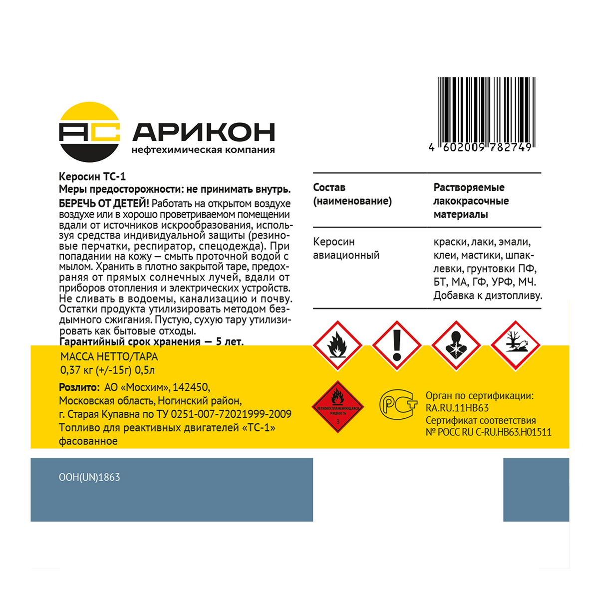 Керосин Арикон ТС-1, 0,5 л