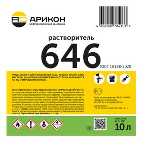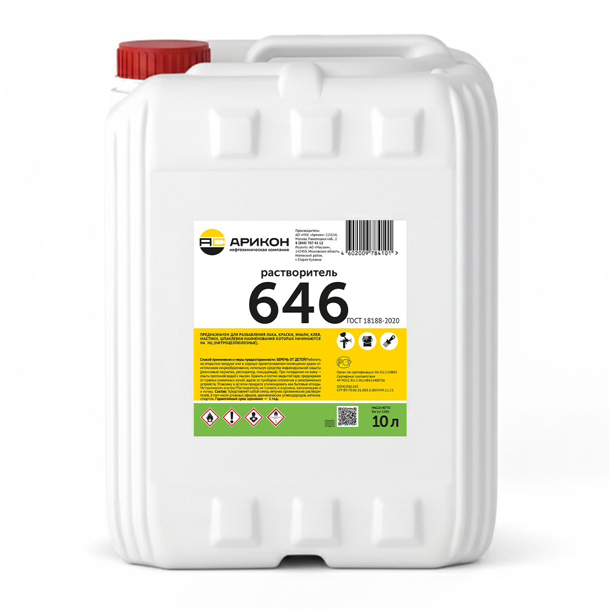 Растворитель 646 активно применяется в автомобильной промышленности, отлично подходит для разбавления нитрокраски используемой для защиты от внешних воздействий на пластиковых, деревянных и металлических поверхностях. Используется для промывания и очистки лакокрасочных инструментов и лакокрасочного технического оборудования.