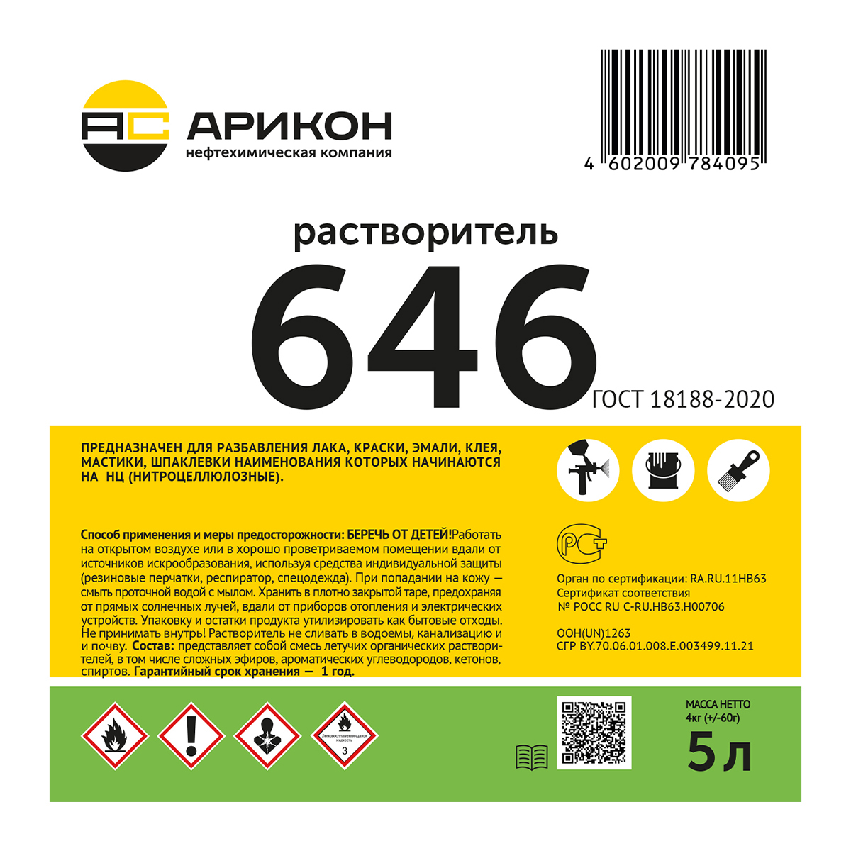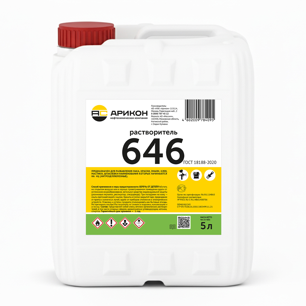 Растворитель 646 активно применяется в автомобильной промышленности, отлично подходит для разбавления нитрокраски используемой для защиты от внешних воздействий на пластиковых, деревянных и металлических поверхностях. Используется для промывания и очистки лакокрасочных инструментов и лакокрасочного технического оборудования.
