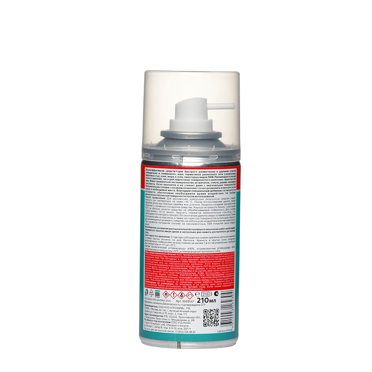 Высокоэффективное средство для быстрого размягчения и удаления остатков затвердевших и свеженанесенных герметиков любого типа (силиконовых, акриловых и т.д.), клея, жира, масла, некоторых видов красок и лаков. Рекомендуется как для полного удаления, так и для подготовки поверхности к нанесению герметика или клея. Может применяться на поверхностях из металла, стекла, дерева и керамики. Преимущества: - Быстро размягчает материал герметика, клея; - Эффективен в удалении широкого спектра материалов; - Легко наносится и хорошо держится даже на вертикальных поверхностях; - Распылительная головка с носиком позволяют точно дозировать и наносить состав только в необходимые места; - Благодаря специальным добавкам состав долго не испаряется, обеспечивая необходимое время воздействия; - Не требует дополнительной очистки поверхности после использования; - Безопасен для большинства видов пластмасс. Предназначен для: - Удаления остатков затвердевших и свеженанесенных герметиков, клея, жира, масла, некоторых видов красок и лака; - Обезжиривания поверхности перед проведением различного рода работ. Основа: ароматические углеводороды >30%, хлорированные углеводороды <30%, алифатические углеводороды <10%, углеводородный пропеллент >15%; Внешний вид: прозрачный бесцветный гель; Способ нанесения: распыление; Объём: 210 мл.