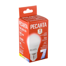 Лампа светодиодная Ресанта LL-R-G45-7W-230-4K-E27