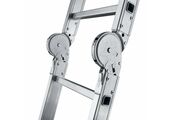 Лестница состоит из четырех секций, соединенных между собой стальными лестничными шарнирами с углами фиксации 35, 105 и 180 градусов. Поэтому такая лестница может принимать различные формы.