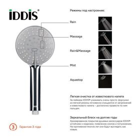На выбор доступны такие режимы подачи воды, как распыление, массаж, распыление и массаж, туман, аквастоп.