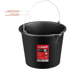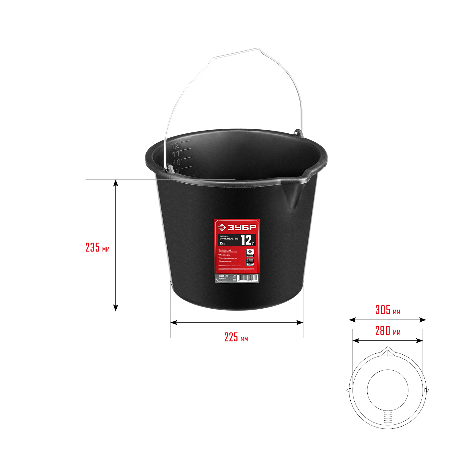 ЗУБР 12 л, высокопрочное с носиком, строительное пластиковое ведро (06093-12)