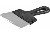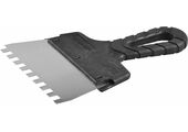 Благодаря зубчатой кромке шпатель идеально подходит для работы со строительными и клеевыми смесями, полотно из нержавеющей стали обеспечивает надежность и долгий срок службы, а удобная пластмассовая рукоятка создает условия для комфортной работы