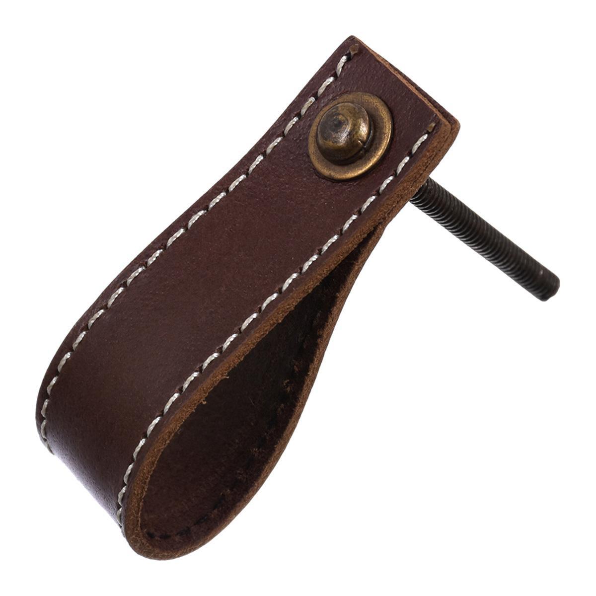 Ручка для мебели Blumen Haus, кожаная, умбра жженая, строчка белая