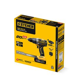 STEHER 20 В, 165 Н·м, 2 АКБ LMS (2 А·ч), бесщеточная ударная дрель-шуруповерт, сумка (CBS-165-22)