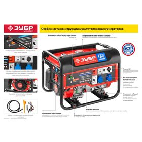 ЗУБР 2200 Вт, гибридный генератор (бензин / газ) (ЗЭСГ-2200-М2)