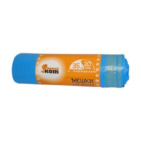 Мешки для мусора Рыжий кот с завязками рулон, 35 л, рулон 20 шт, синие