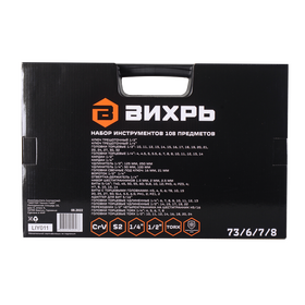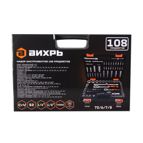 Набор инструментов, 1/2", 1/4", CrV, в кейсе 108 предметов Вихрь