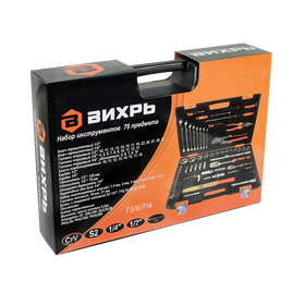 Набор инструментов, 1/2", 1/4", CrV, пластиковый кейс 76 предмета Вихрь