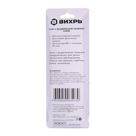 Нож с выдвижным лезвием 25 мм, двухкомпонентный корпус, винтовой фиксатор, Вихрь