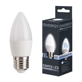 Лампа светодиодная матовая Energy, E27, свеча, 10 Вт, 4000 K, нейтральный свет