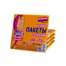 Универсальные пакеты с ручками Avikomp Popular, 60 л, упаковка 25 шт, желтые