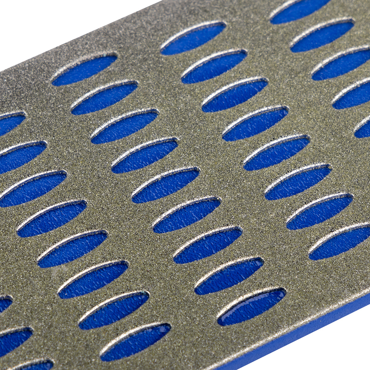 Брусок точильный алмазный крупнозернистый. Отверстия эллиптической формы для лучшего отвода пыли снятого материала.