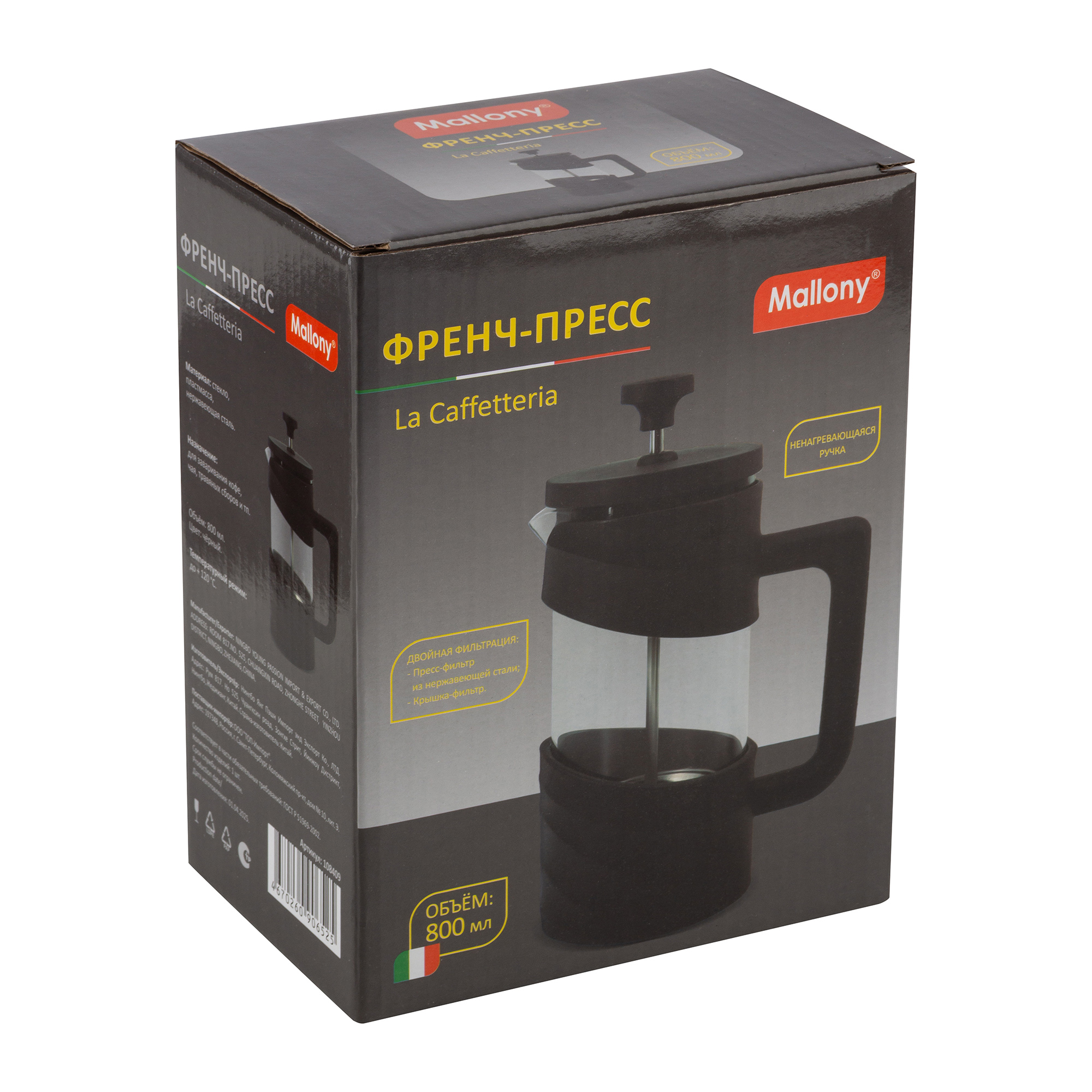 Френч-пресс Mallony La Caffetteria, 800 мл