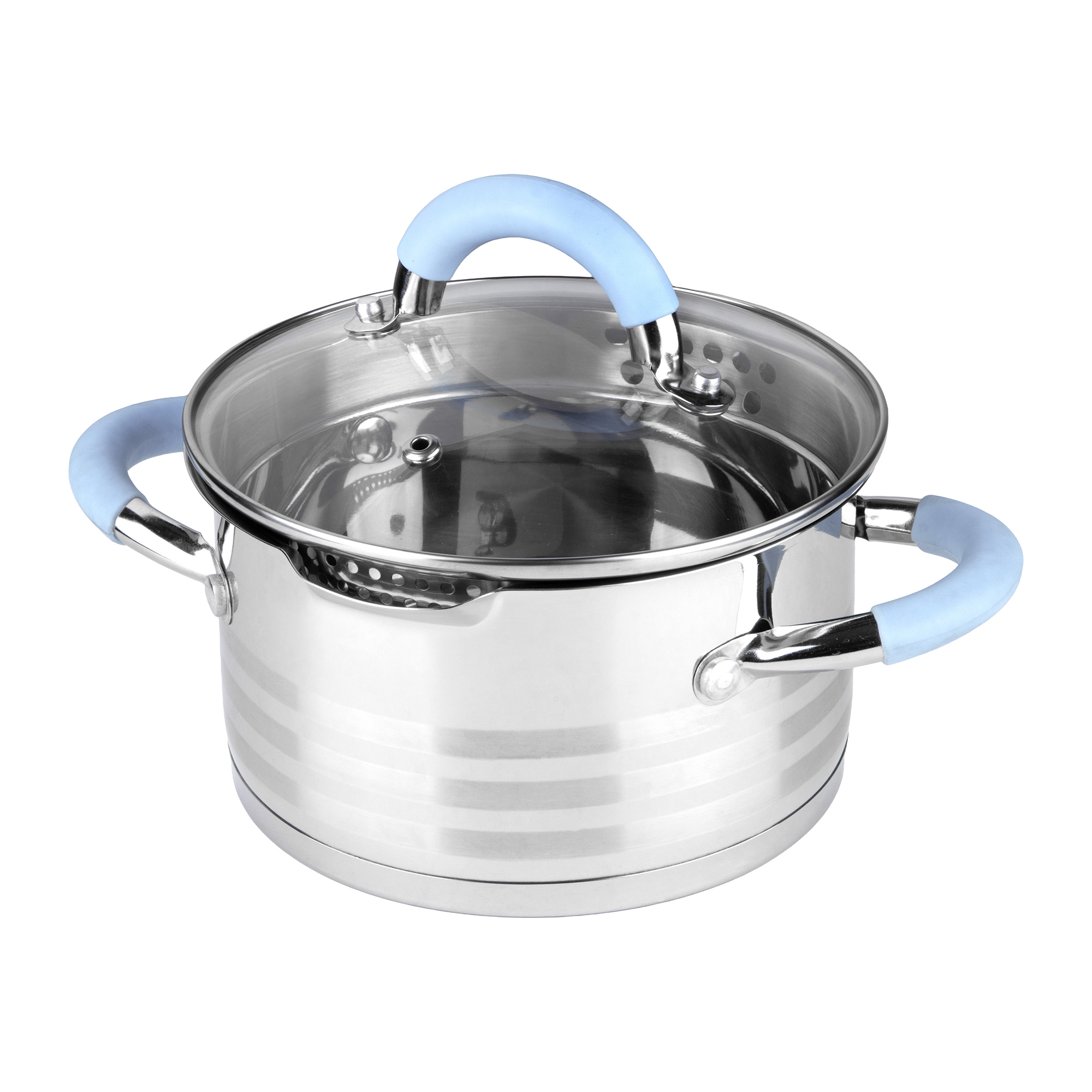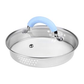 - Крышка-дуршлаг из жаропрочного стекла с отверстиями разного диаметра 3 и 6 мм с двух сторон + отверстие для выпуска пара в стеклянной части;