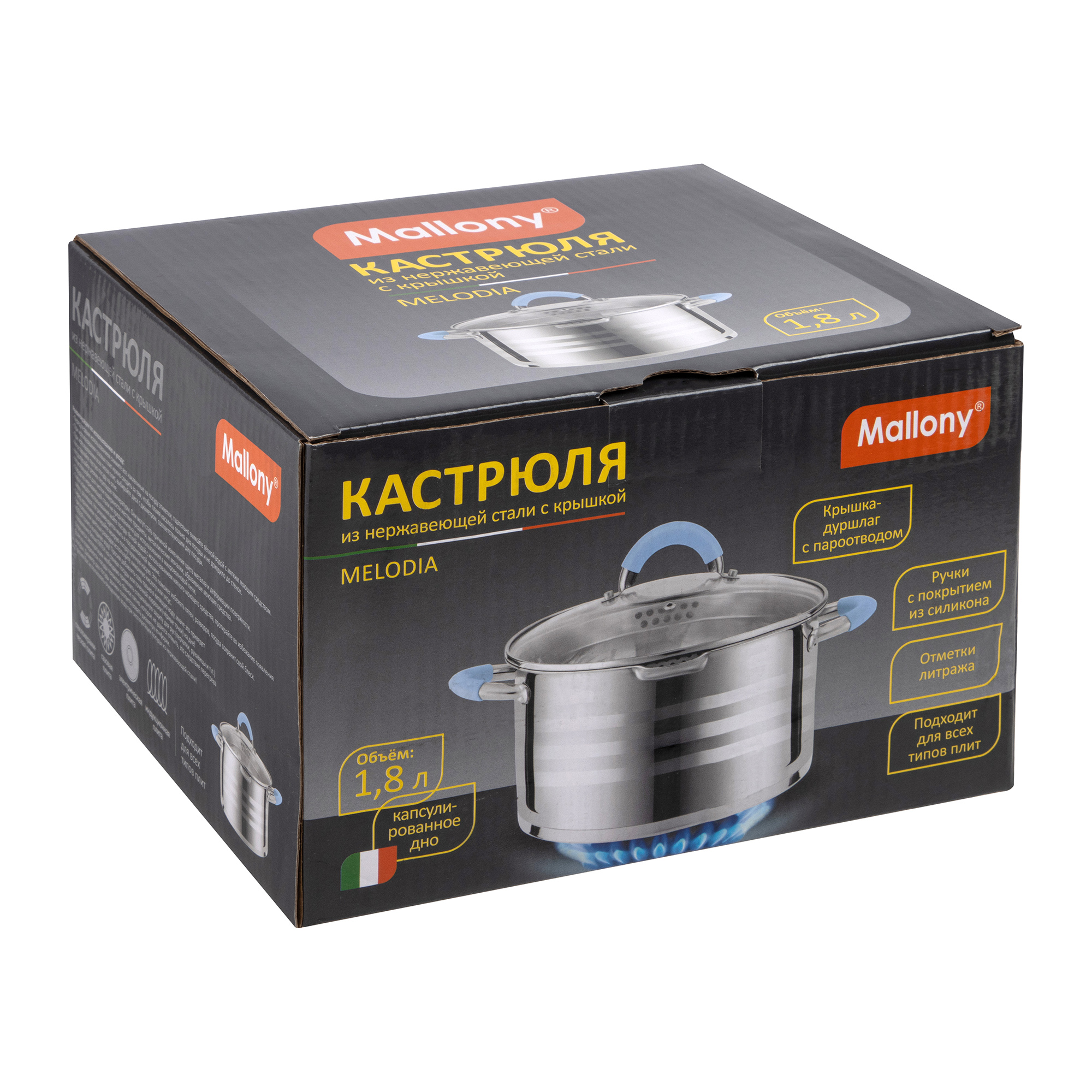 Кастрюля Mallony Melodia с крышкой, нержавеющая сталь, 1,8 л