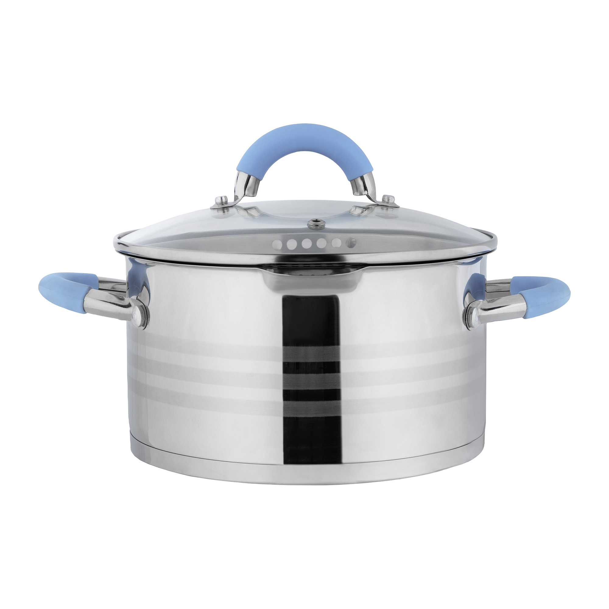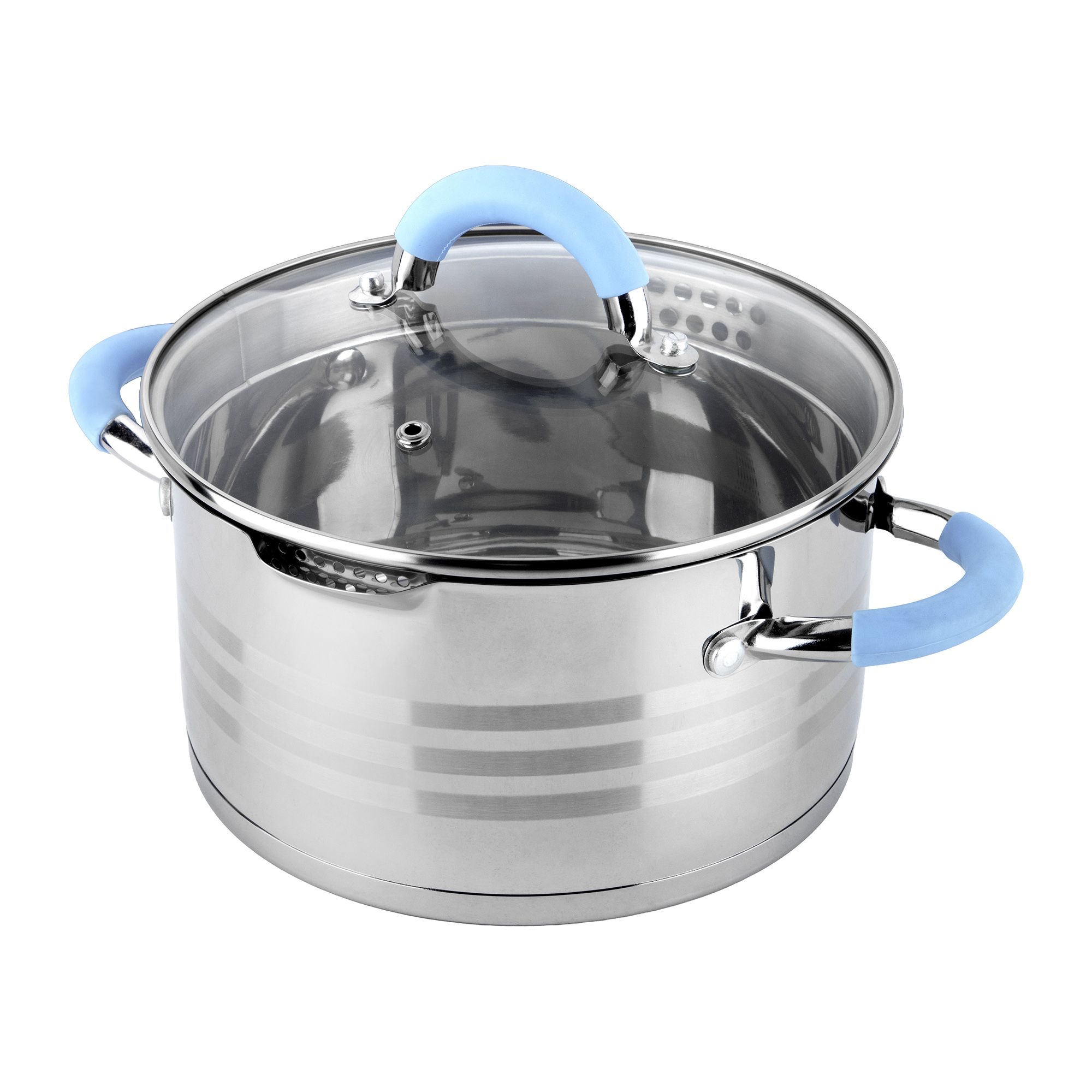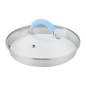 - Крышка-дуршлаг из жаропрочного стекла с отверстиями разного диаметра 3 и 6 мм с двух сторон + отверстие для выпуска пара в стеклянной части;