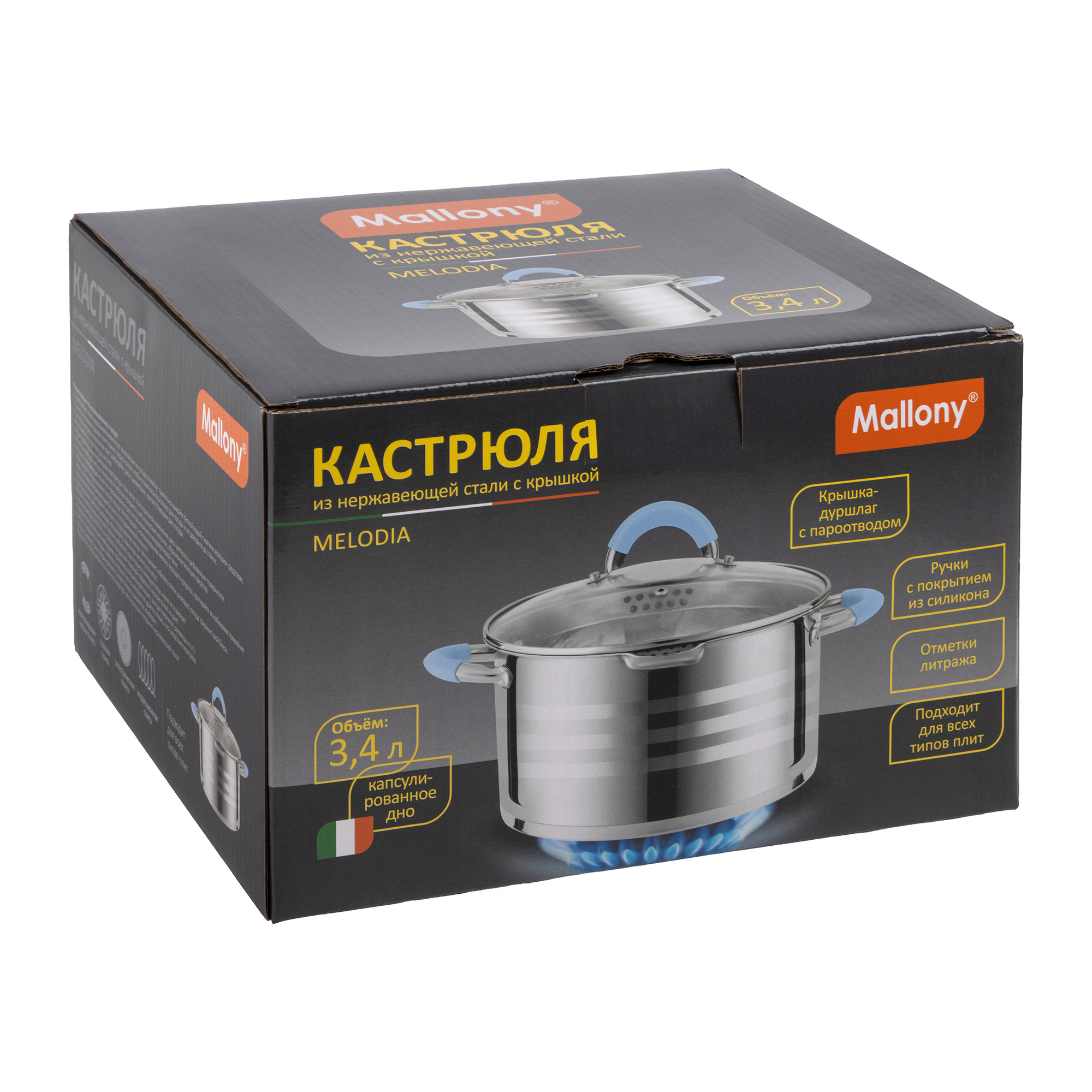 Кастрюля Mallony Melodia с крышкой, нержавеющая сталь, 3,4 л