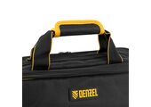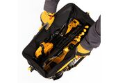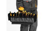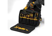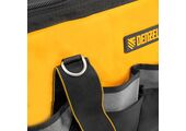 Рюкзак предназначен для транспортировки ручного инструмента, изготовлен из прочного синтетического материала, устойчивого к истиранию - плотный полиэстер (600 D). Оснащен боковыми карманами и удобной ручкой для переноски. 2 секции на молнии (металлические бегунки с пластиковой оболочкой) для быстрого доступа. Съемный органайзер для возможности оптимизации внутреннего пространства рюкзака. Размер рюкзака 450*340*170 мм. Рюкзак оснащен 16 карманами. Грузоподъемность 18 кг, объем 24 литра.