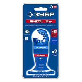 ЗУБР BIM 65x50 мм, 14TPI полотно биметаллическое, быстрый рез: твердое дерево, ламинат, ПВХ (15573-65-50)