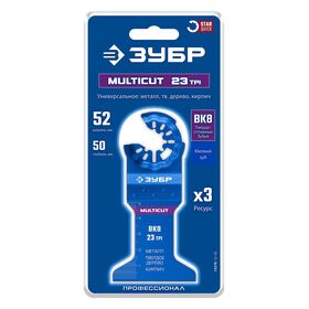 ЗУБР MULTICUT ВК8 23TPI, 52x50 мм полотно универсальное с твердосплавными зубьями: металл, твёрдое дерево, кирпич (15576-52-50)