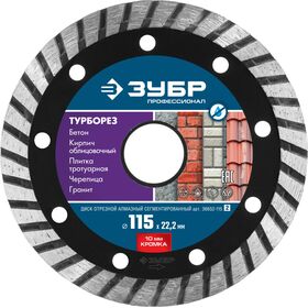 ЗУБР Турборез, 115 мм, (22.2 мм, 10 х 2.2 мм), сегментированный алмазный диск, Профессионал (36652-115)