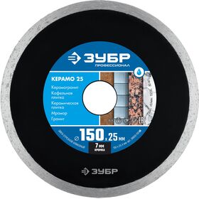 ЗУБР Керамо-25, d 150 мм, (25.4мм, 7 х 2.0 мм), сплошной алмазный диск, Профессионал (36655-150)