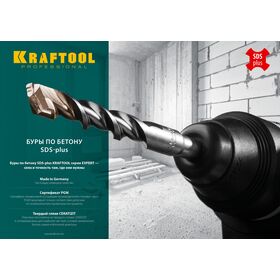 Буры по бетону SDS-Plus KRAFTOOL серии EXPERT - сила и точность там, где они нужны. Применяются при сверлении отверстий в бетоне, граните, кирпичной кладке, камне и твердых известняках.