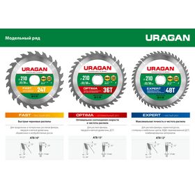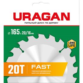 URAGAN Fast, 165 х 20/16 мм, 20Т, пильный диск по дереву (36800-165-20-20)