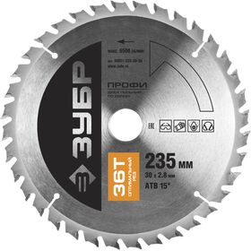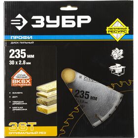ЗУБР Оптимальный рез 235х30мм 36Т, диск пильный по дереву