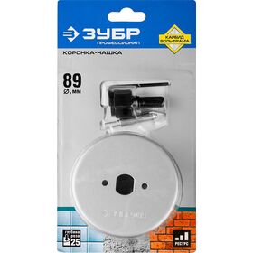 ЗУБР 89 мм, L 25 мм, карбид вольфрама, коронка-чашка, Профессионал (33360-089)