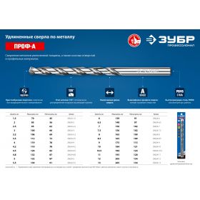 ЗУБР ПРОФ-А, 6,5 х 148 мм, сталь Р6М5, класс А, удлиненное сверло по металлу, Профессионал (29624-6.5)