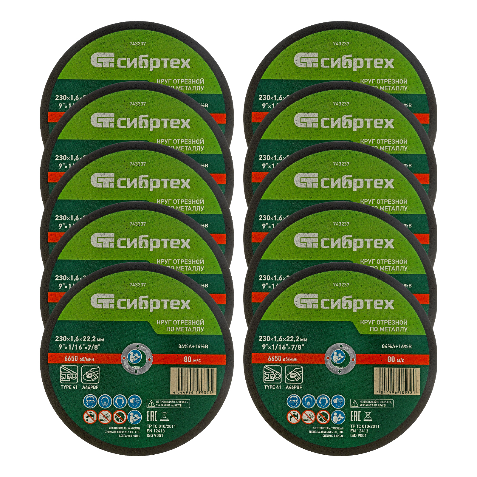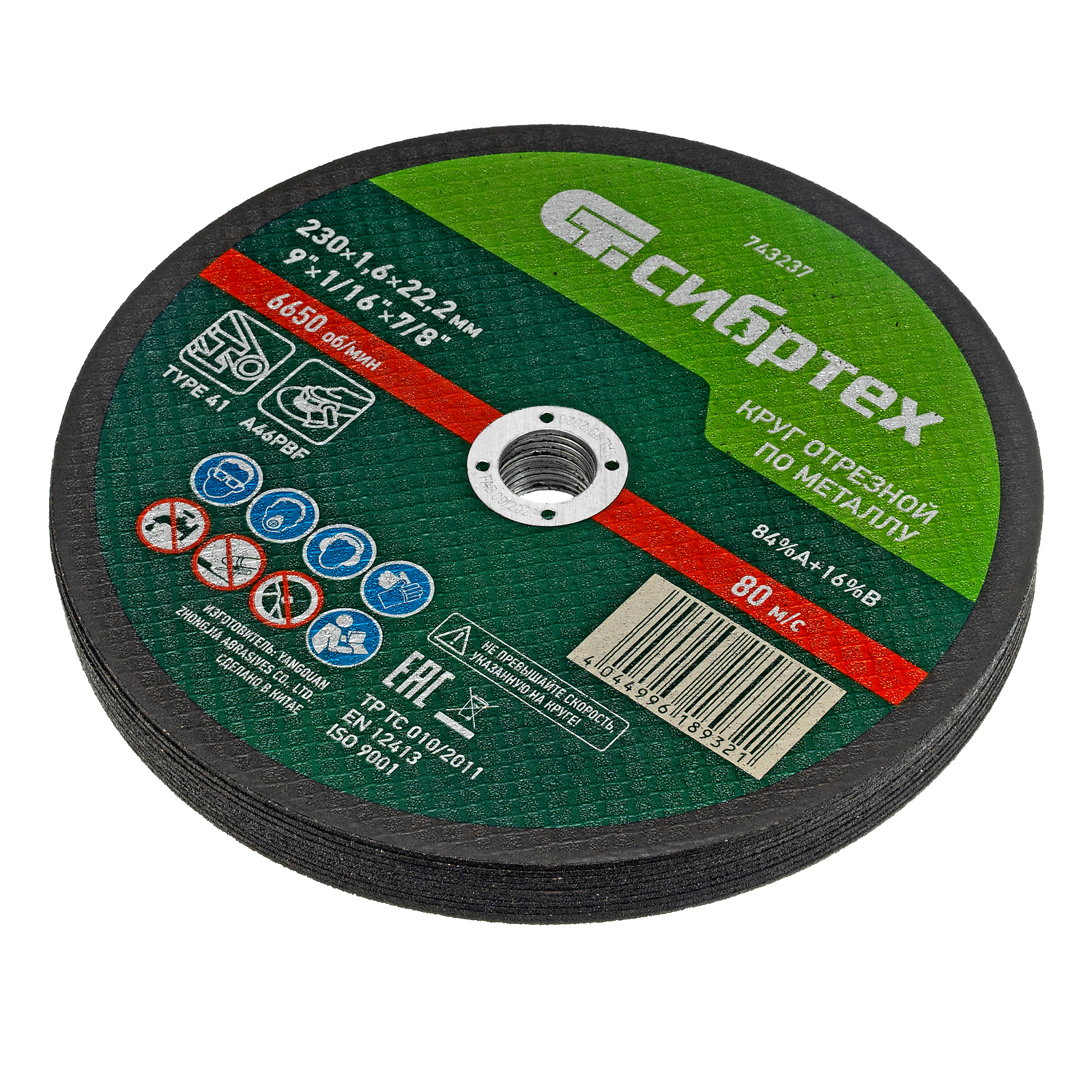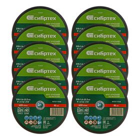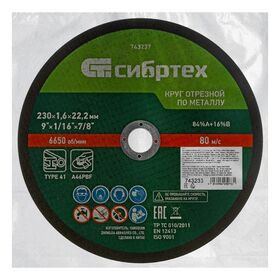 Круг отрезной по металлу, 230 х 1,6 х 22,2 мм, 84%A+16%B, в пленке, 10 шт Сибртех СИБРТЕХ
