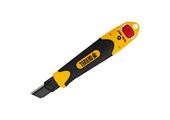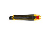Нож, 25 мм, сменное лезвие, SK4, корпус из TPR, метал. направляющая, винтовой фиксатор Denzel