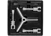 Захваты съемника выкованы из качественной инструментальной стали, что обеспечивает долгий срок службы при работе с высокими нагрузками. Позволяет работать с широким рядом узлов