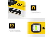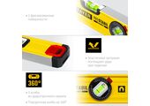 - Редкоземельный магнит на рабочей поверхности уровня, который позволяет надежно фиксировать инструмент на металлических поверхностях.