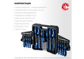Профессиональный набор KRAFTOOL с высокопрочными Cr-Mo стержнями. Переставная отвертка надежно удерживает стержни и позволяет применять максимальные усилия при работе
