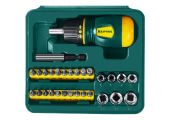 Набор хромованадиевых бит и торцовых головок с реверсивной отверткой разработан для монтажа и демонтажа резьбовых соединений в соответствии с высочайшими требованиями профессионалов