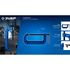 ЗУБР ПСС-75, 75 мм,чугунная струбцина тип С (G-образная), Профессионал (32245-075)