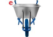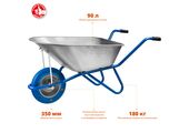 - -Cтальной кузов толщиной 0,7мм и объемом 90л для сыпучих грузов имеет цинковое покрытие, обеспечивающее защиту тачки от внешних воздействий.,